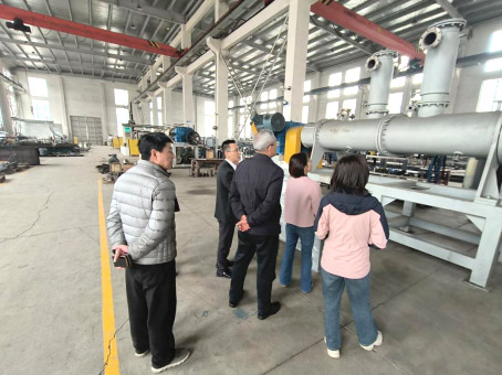 參觀伊始,易家馳董事長(zhǎng)帶領(lǐng)各位領(lǐng)導(dǎo)走進(jìn)生產(chǎn)車間,重點(diǎn)介紹了公司核心產(chǎn)品——臥式雙軸自清潔設(shè)備與真空籃式研磨機(jī),以及各類機(jī)器的重要部件。在臥式雙軸自清潔設(shè)備前,易董詳細(xì)講解了該設(shè)備的核心優(yōu)勢(shì):作為一款新型攪拌式混合機(jī),它可適配高粘度、粘糊狀、粉狀等多種物料,兼具自清潔、高效傳熱的特點(diǎn),其雙軸嚙合旋轉(zhuǎn)設(shè)計(jì)確保設(shè)備無死角,能有效滿足化工生產(chǎn)中化學(xué)反應(yīng)、蒸發(fā)、干燥等多單元操作需求,是高粘流體物料處理的優(yōu)選設(shè)備。