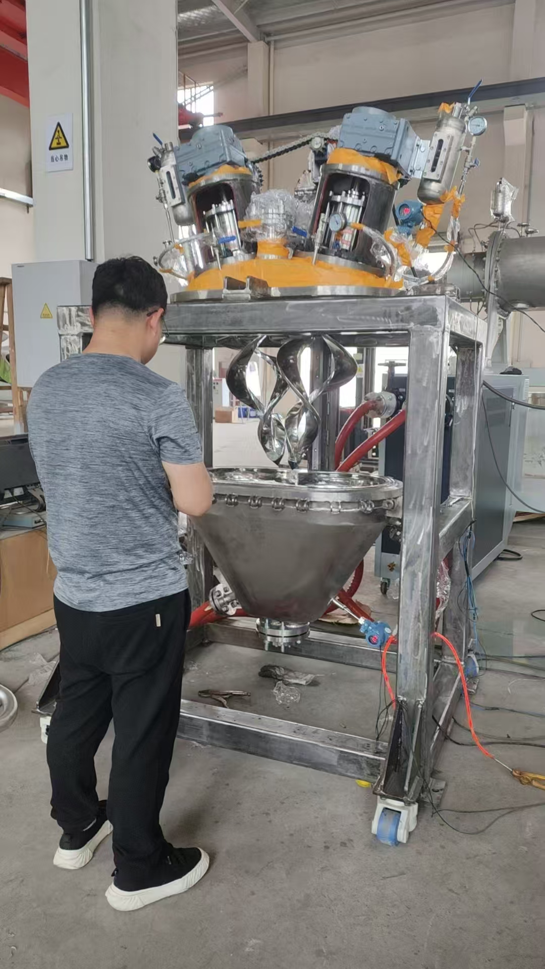 無軸雙錐螺帶混合機涉及化工、醫藥、醫療器械、鋰電、高能電池、硅橡膠、科研實驗等技術領域,特別對單批次生產和小批量的化學實驗應用,尤其涉及PLA、PGA、PBO等超高粘物料的混合攪拌或化學反應領域。