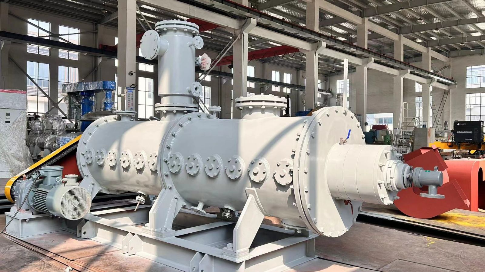 .混合機除夾套有傳熱功能外所有部件均可被用來進行熱傳遞,其主要的傳熱單元還是攪拌軸和攪拌盤,攪拌軸和槳盤中間設計是空心的,為了盡量增大單位設備容積的傳熱面積,攪拌軸和攪拌槳都能通入0-300℃傳熱介質循環,加上強勁的混合和捏合作用能有效地使物料更快地表面更新,該作用與具有自清潔功能的傳熱面相結合,從而確保熱、質傳遞所需的高表面更新速率。單位時間內物料接觸換熱面積增加,使該混合設備具有高效的傳熱能力.是高粘流體物料反應,脫泡,蒸發,干燥,脫輝的首選裝置。