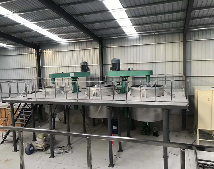 平臺式高速分散機主要是針規模化生產而采用的安裝方式,是配合攪拌桶的作業高度,將標準高速分散機固定位置做于攪拌機的半腰上,將其固定在架臺上。分散缸口基本與操作平臺相平,減少投料高度和難度。分散機與分散缸固定式樓層式安裝,有效的利用空間,還可以減少操作勞動力強度,分散缸位置高,放料快,出料口將攪拌好的原料成品排放出攪拌桶,直接包裝或輸入下一個工序,有利于灌裝,提高效率。