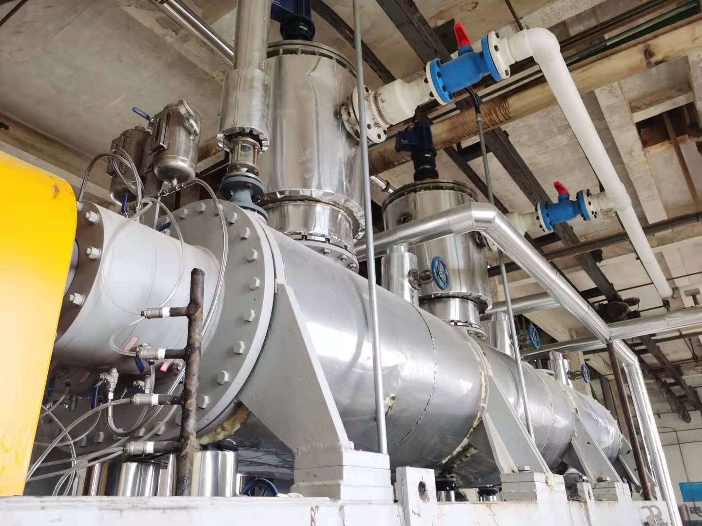 安裝在反應(yīng)器頂部的聚氣室用于氣體排放。聚氣室可加熱,以避免氣體冷凝和回流。由于聚氣室的口徑較大,汽體在聚氣室里的流速極低,即使在高真空的條件下,液滴的夾帶量仍極小。