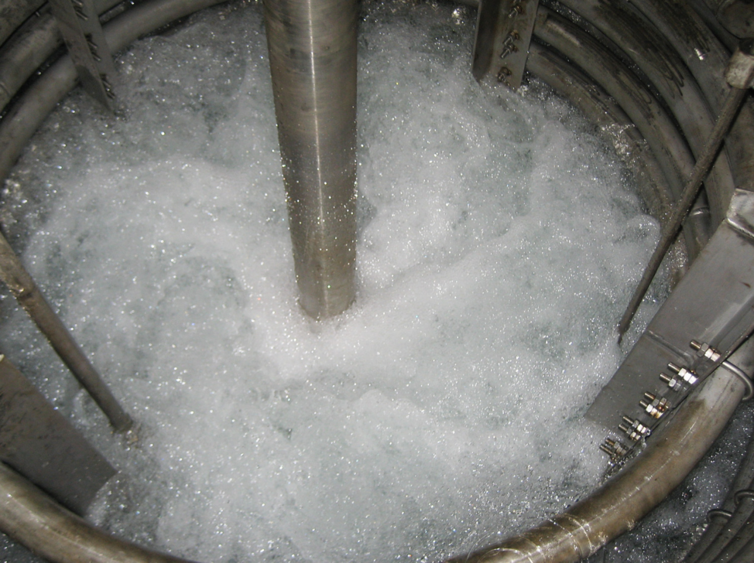 反應(yīng)物料粘度增大,固相物料分散困難,宏觀性循環(huán)需求加大,改進(jìn)軸流槳排量加大;氣體分散距離受到很大的影響,氣體分布較遠(yuǎn)的地方靠單純的自吸葉輪無法實(shí)現(xiàn)等,物料有一定粘度時(shí),吸入的氣體進(jìn)入液相后產(chǎn)生的氣泡會較大,且不易破碎;